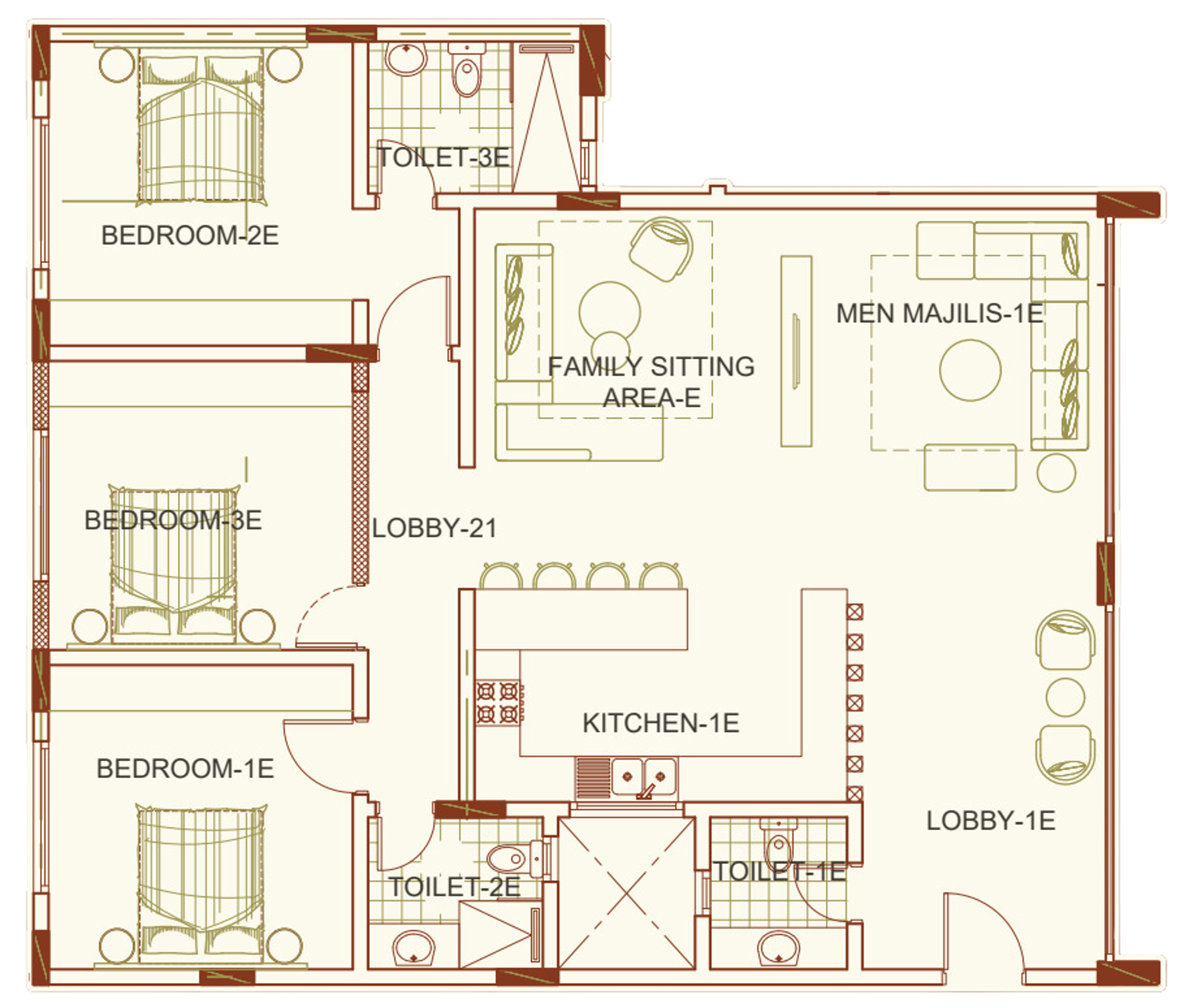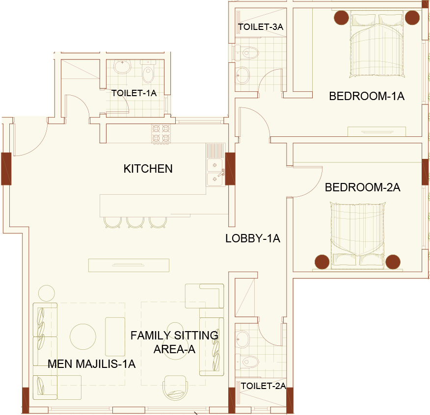 وحدات بغرفتين وثلاث غرف نوم، كل وحدة مصحوبة بموقف أو أكثر مخصصة للسيارات، مما يضمن الراحة للسكان وضيوفهم.